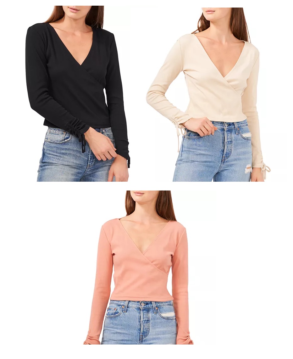 Great deal! Get this Faux Wrap Top for only $17! That's 71% off regular price! Plus, this Faux Wrap Top ships free! Get it while it's hot! Like this deal? Here are some similar ones — Zimmermann 50% off Zimmermann Tops for $247+ and this Isabel Marant Etoile Plalia Pleated Cotton Blouse size 34-38 for $125. If you like deals and sales on 1.STATE Women's Tops, follow us on Instagram to get notified of the latest deals! For more deals on Women's Tops click here.