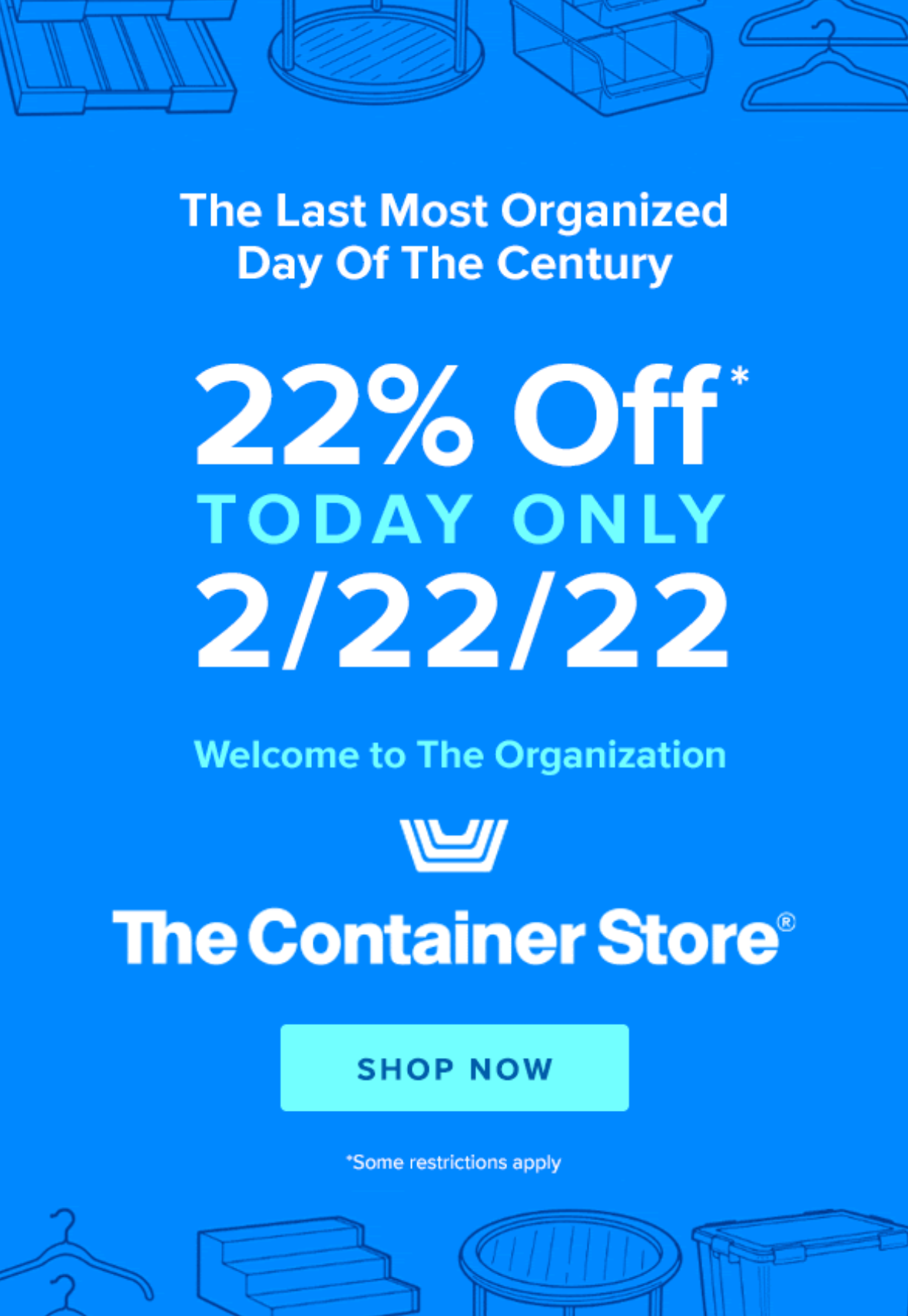 Great offer! The container store 22% off Sale . Today Only. Shop now before it sells out! Like this deal? Here are some similar ones — Matouk Auberge Monogrammed towel for $10-$34 and this RICCI SILVERSMITH 45-Piece Mia Flatware Set for $188. For more deals on Home Goods click here.