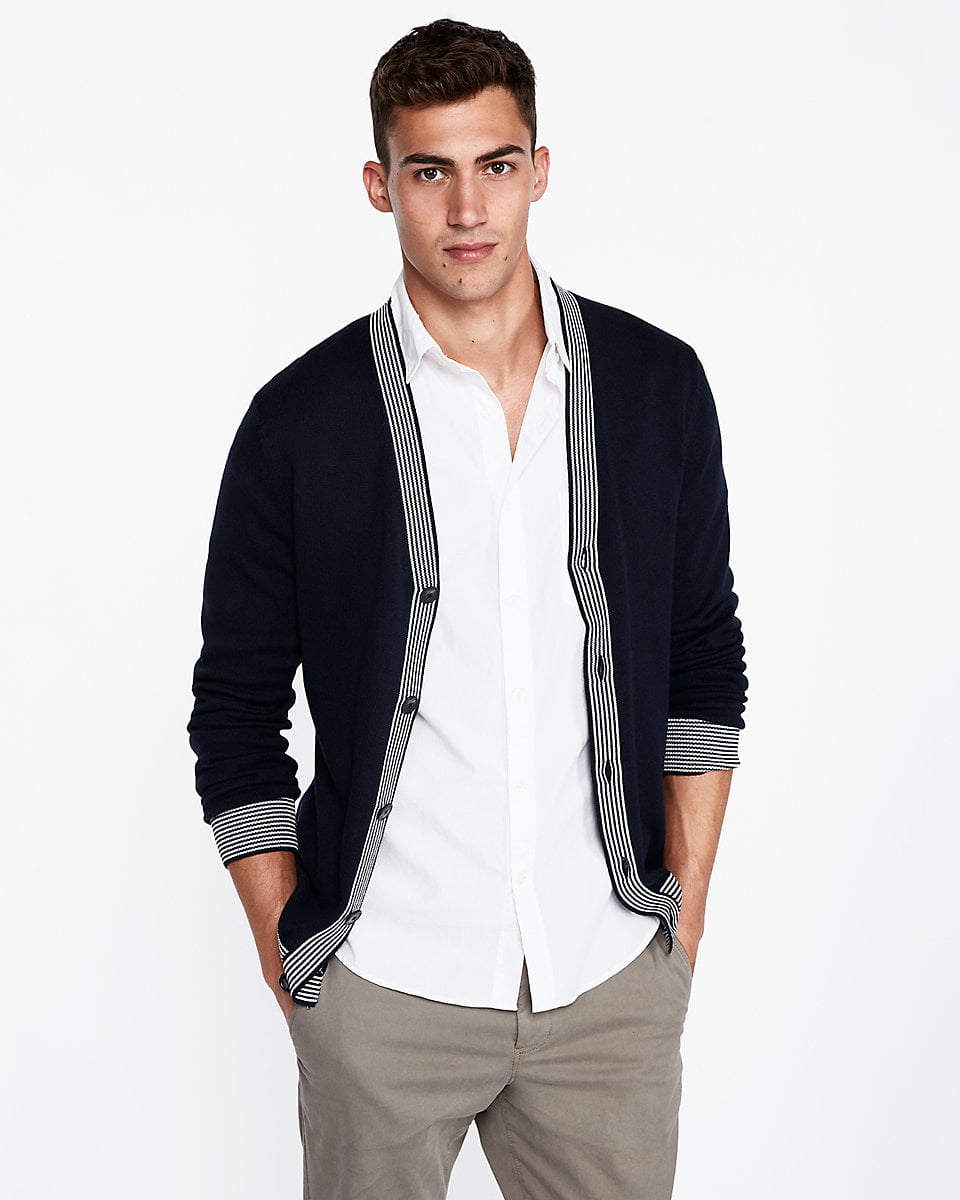This v-neck cotton cardigan features a soft cotton knit, buttons and a tipped v-neckline, hem and cuffs for a handsome look you can layer over nearly anything.
