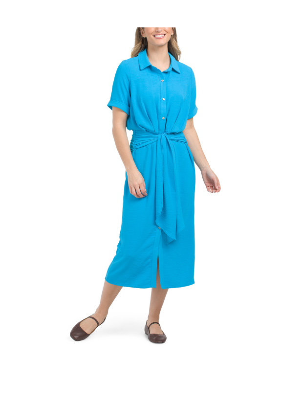 Here's the deal - Get Airwash Tie Front Button Down Midi Dress for only $30! That's 48% off regular price! Get it before it sells out!
