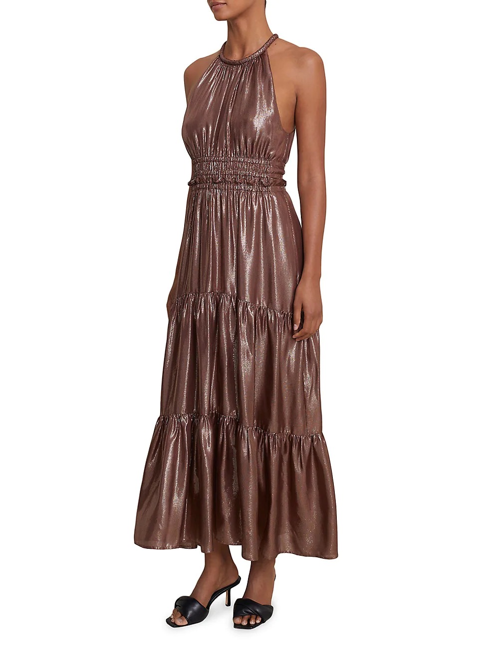 Here's the deal - Get this Elara Metallic Halter Dress for only $357! That's 40% off regular price! Plus, this Elara Metallic Halter Dress ships free! Get it while it's hot! Like this deal? Here are some similar ones — Wool Mix Split Sweater Dress for $35 and this Madewell Folktale Paisley Long Sleeve (Re)sourced Georgette Midi Dress for $70. If you like deals and sales on ALC Women's Dresses, follow us on Instagram to get notified of the latest deals! For more deals on Women's Dresses click here.