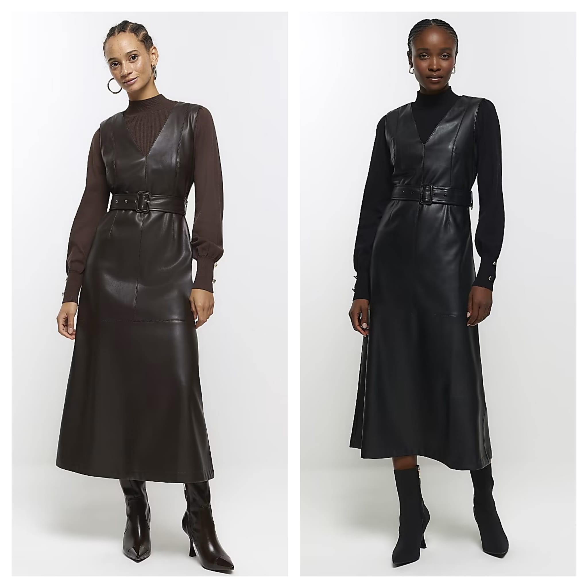 Great offer! Get Black Faux Leather Belted Swing Midi Dress for only $121! Will sell out fast!