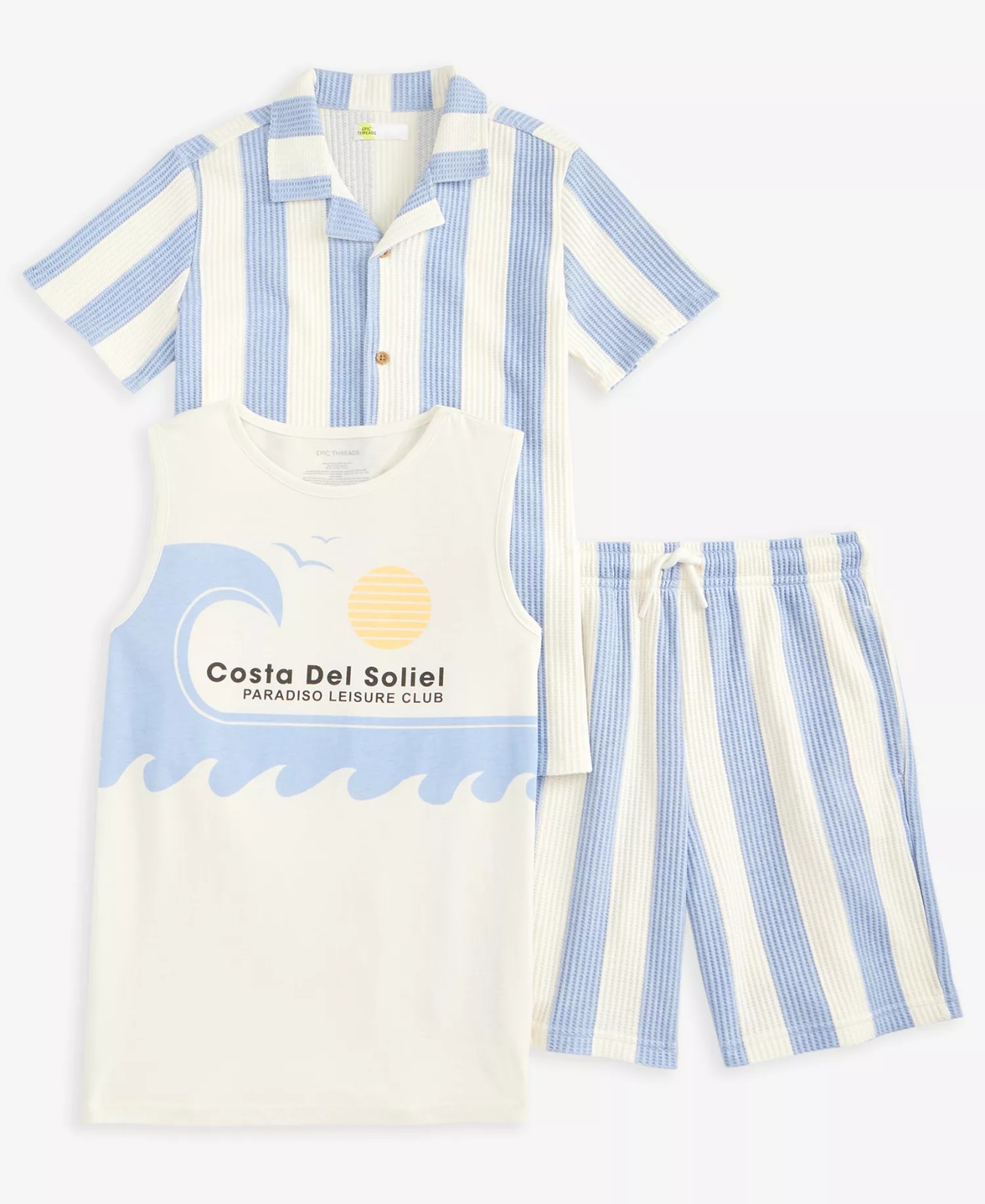 Hey there! Got a growing kiddo who needs a wardrobe refresh? Check out this *amazing* Boys 5-20 3-pc. Striped Shirt, Tank Top & Shorts Set from Macy's - now just $30! That's a solid 50% off the original $60 price. Seriously, you couldn’t even get a fancy ice cream cone for that much! This sweet set includes a striped shirt for family BBQs, a cool tank for those hot summer days, and shorts for ultimate playground action. Oh, and did I mention it ships free? Yup, no shipping fees means more cash for those summer outings. Don’t sleep on this deal for kids clothing; it’s a no-brainer!Want more? Here are some similar deals Linen Romper Suit for $30 and this Bear Appliqué Footie & Beanie Set for $28. For more deals on Kids Clothing click here.