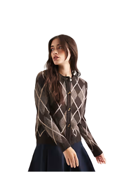 This Button Down Crew Neck Cardigan in Brown Argyle Women's Sweaters deal is a steal at $40!Want more? Here are some similar deals Becca Crew Neck Shell Sweater for $60 and this Animal Print Cardigan for $20. For more deals on Women's Sweaters click here.