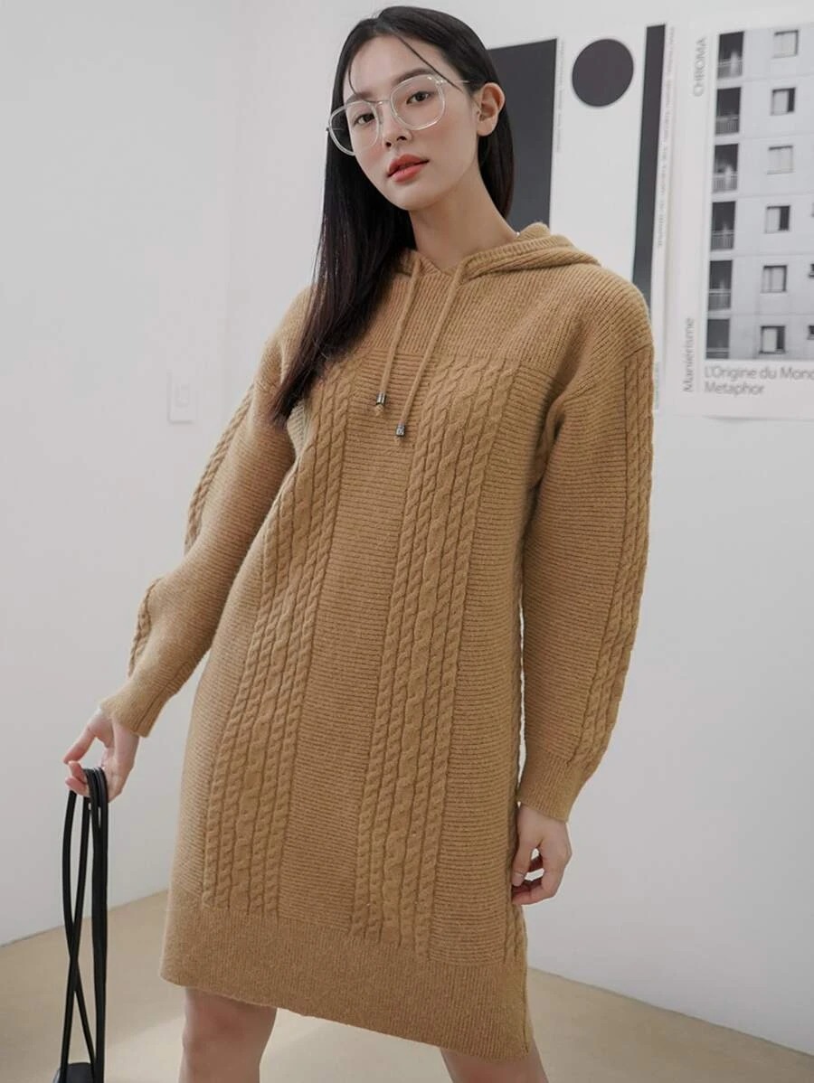 Hot!! Get this Cable Knit Drop Shoulder Drawstring Hooded Sweater Dress for only $31! Will sell out fast! For more deals on Women's Dresses click here.