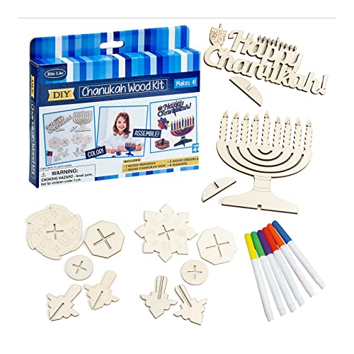 Here's the deal - Get Chanukah Wood Craft Kit - Design Your Own for only $10! Shop now before it sells out! Create your own wooden menorah, dreidel, or 'Happy Chanukah' sign using the included markers. The set includes 14 wooden pieces and 6 markers, perfect for kids to express their creativity. It features 4 wooden projects, making it ideal for class projects and a great holiday gift.