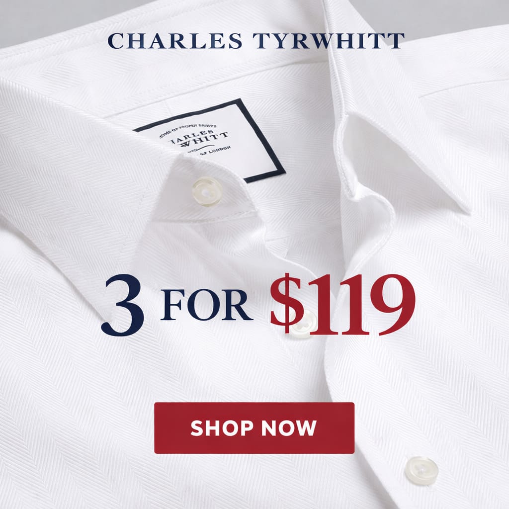 You'll love this deal! Get this 3 Charles Tyrwhitt Shirts for $99 for only $99! That's 73% off regular price! Don't forget to enter the coupon code above at checkout to get this sale price! Will sell out fast! Here are some similar deals we think you'll enjoy — Karl Lagerfeld Paris Solid Striped Large Logo T-shirt for $16 and this Hugo Boss Slim-fit Polo Shirt with Mesh Logo Size S for $56. If you like deals and sales on Charles Tyrwhitt Men's Shirts, follow us on Instagram to get notified of the latest deals! For more deals on Men's Shirts click here.