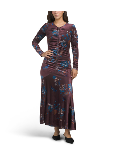 This Cinched Waist Printed Velvet Maxi Dress Women's Dresses deal is a steal at $60! Save 50% off!Here are some similar deals we think you'll enjoy Belt Satin Dress for $100 and this Floral Jacquard Dress with Bell Sleeves for $150. For more deals on Women's Dresses click here.
