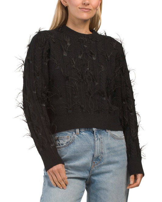 Awesome deal! Get Cleo Feather Accent Pullover Sweater for only $30! That's 50% off regular price! Will sell out fast!