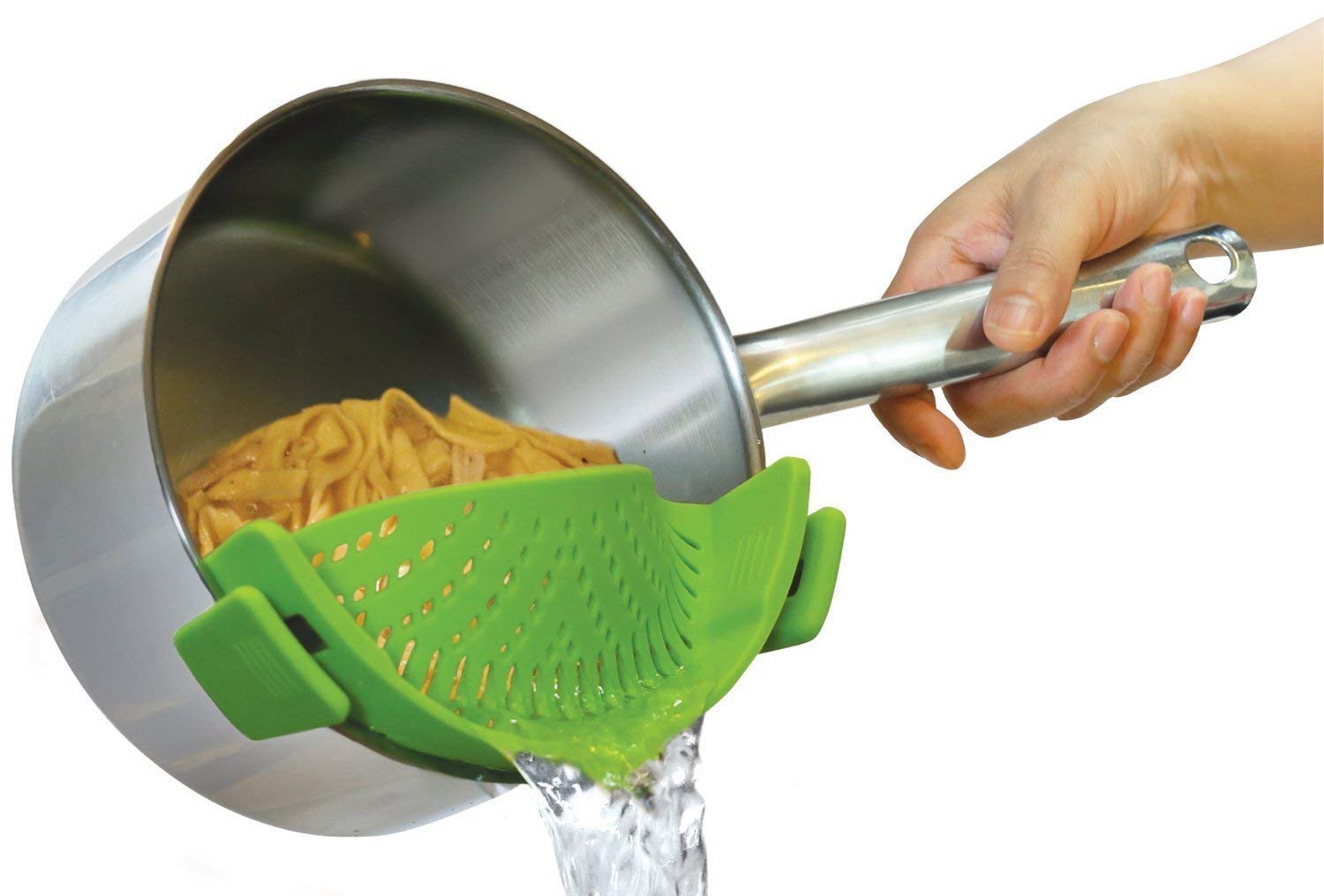 Clip-On Kitchen Food Strainer for Spaghetti, Pasta, Snaps on Bowls, Pots and Pans