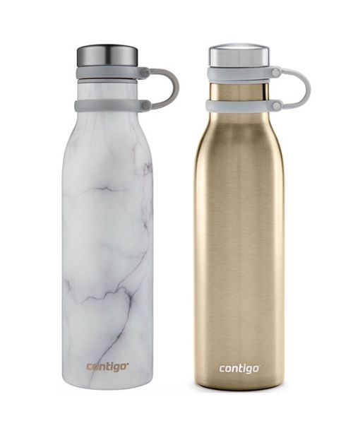 Capacity: approx. 20-oz. each Set includes two water bottles Thermalock double-wall vacuum insulation keeps drinks cold up to 24 hours or hot up to 10 hours Removable spout twists off for easy cleaning and adding ice cubes Lid is leak-proof when closed; soft-touch tether doubles as a handle for carrying BPA-free lid Manufacturer's limited lifetime warranty Stainless steel/plastic Hand wash