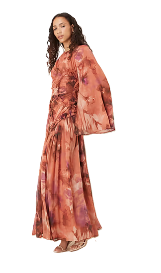 This Crinkle Chiffon Gathered Maxi Dress with Micro Ruffles in Rust Floral Print Women's Dresses deal is a steal at $139! Plus, Crinkle Chiffon Gathered Maxi Dress with Micro Ruffles in Rust Floral Print ships free!Like this deal? Here are some like ones Griselda Belted Midi Dress for $318 and this Claudia Floral Silk Long-sleeve Fluted Midi Dress Size 2 for $340. For more deals on Women's Dresses click here.