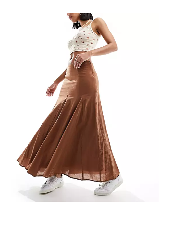 Hot!! Get Daisy Street Low Rise Flare Crinkle Maxi Skirt in Washed Brown for only $62! Hurry - Only a few left!