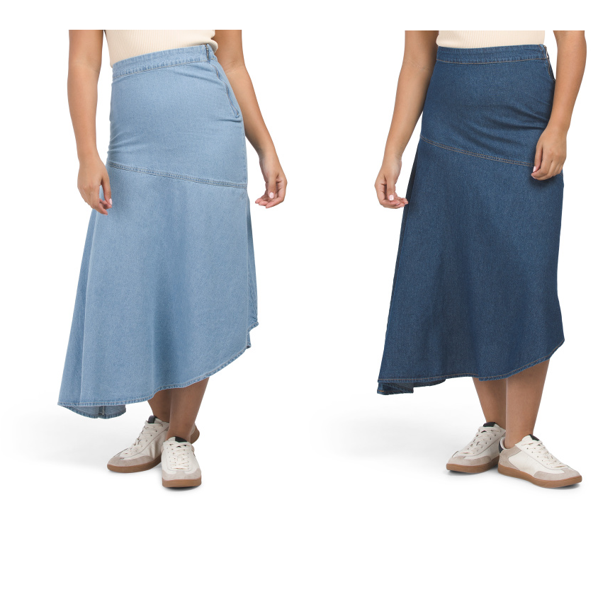 Here's the deal - Get Denim Asymmetric Ruffle Hem Midi Skirt for only $16! That's 36% off regular price! Get it before it sells out!