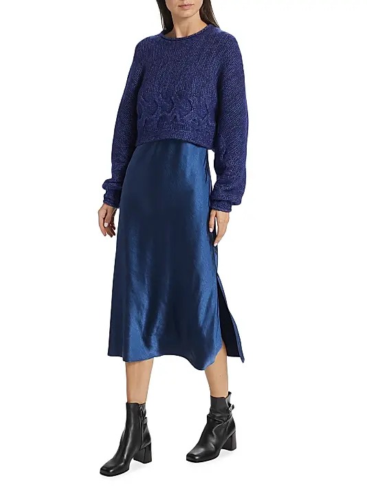 Listen up, fashionistas! You're gonna want to check out this dh New York Ann Sweater & Satin Midi-dress deal that's basically screaming “add me to your closet.” Priced at just $149, down from $248, that’s a sweet 40% off! This dress is the perfect blend of cozy and classy. It’s like your favorite sweater decided to take a night out on the town. The satin finish gives it a touch of glam that'll have heads turning, while the sweater top keeps things fun and comfy. Oh, and did I mention it ships free? You might wanna grab this one before it disappears-because just like your last piece of pizza, it won't last long!Want more? Here are some similar deals Long Sleeve Dress for $118 and this Meryl Pleated Maxi Dress for $248. If you like deals and sales on dh New York Women's Dresses, follow us on Instagram to get notified of the latest deals! For more deals on Women's Dresses click here.