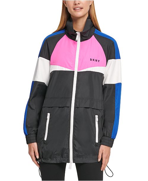 Playful colorblocking updates this look from DKNY Sport, a stylish jacket with an easy feel.