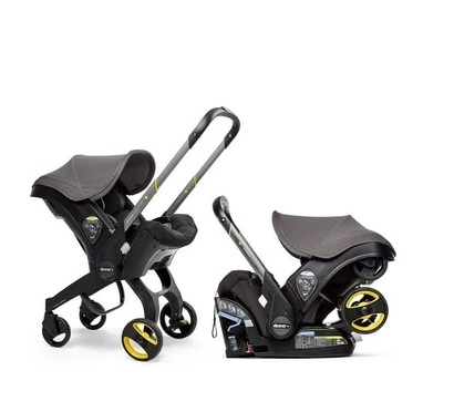 A brand new car seat with a unique feature - the Doona car seat's integrated wheels flip down to convert into a complete travel system!