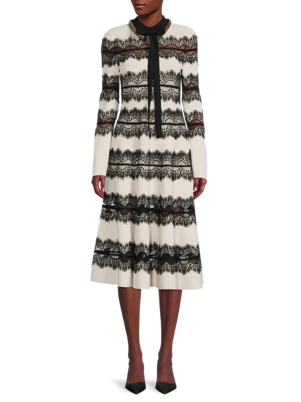 Super deal! Get this Lace Knit Silk Blend Sweater Midi Dress for only $1050! That's 82% off regular price! Plus, this Lace Knit Silk Blend Sweater Midi Dress ships free! Shop now before it sells out! Here are some similar deals we think you'll enjoy — Gigi Ruffled Velvet Midi Dress for $312 and this Stellah Ruffle Midi Dress for $170. If you like deals and sales on ELIE SAAB Women's Dresses, follow us on Instagram to get notified of the latest deals! For more deals on Women's Dresses click here.