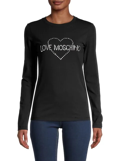 Hot!! Get this Love Moschino Embellished Logo Long-Sleeve T-Shirt for only $80! That's 52% off regular price! Get it before it sells out! If you like deals and sales on Love Moschino Women's Tops, follow us on Instagram to get notified of the latest deals! For more deals on Women's Tops click here.