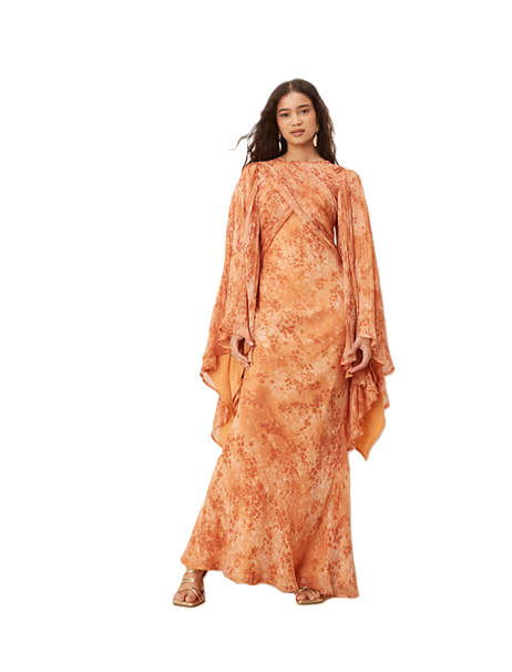 Alright, fashionistas, listen up! This stunning Exaggerated Sleeve Wrap Bias Maxi Dress in Brown Floral Print is about to become your new summer BFF. Priced at just $87, down from $109, that’s a sweet 20% off! Talk about embracing the floral vibes while staying chic. With those dramatic sleeves, you’ll feel like you just stepped off a runway every time you twirl. Plus, it ships free, so you can invest that shipping cash into a cute bag to match. Don’t forget to use the coupon code SUMMER20 at checkout. Your wardrobe will thank you, and so will your wallet. Get ready to slay the day!Want more? Here are some similar deals Fall Printed Midi Dress for $50 and this Denim Circle Maxi Skirt in Bleach for $80. For more deals on Women's Dresses click here.