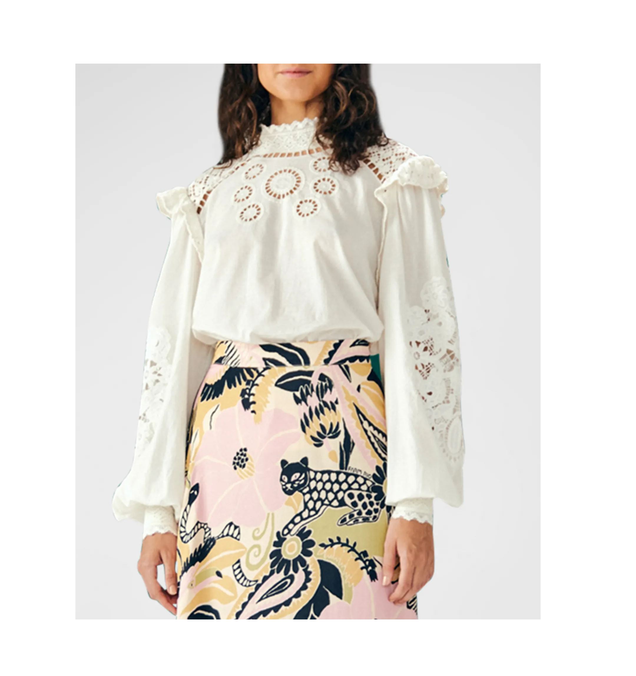 Super deal! Get this Cutwork Lace Bishop-Sleeve Blouse for only $87! That's 50% off regular price! Plus, this Cutwork Lace Bishop-Sleeve Blouse ships free! Run! Get it before it's too late! Here are some similar deals we think you'll enjoy — Pleated Long Sleeve Tee for $30 and this Mes Demoiselles Pheobe Shimmer Botanical-print Shirt for $161. If you like deals and sales on Farm Rio Women's Tops, follow us on Instagram to get notified of the latest deals! For more deals on Women's Tops click here.