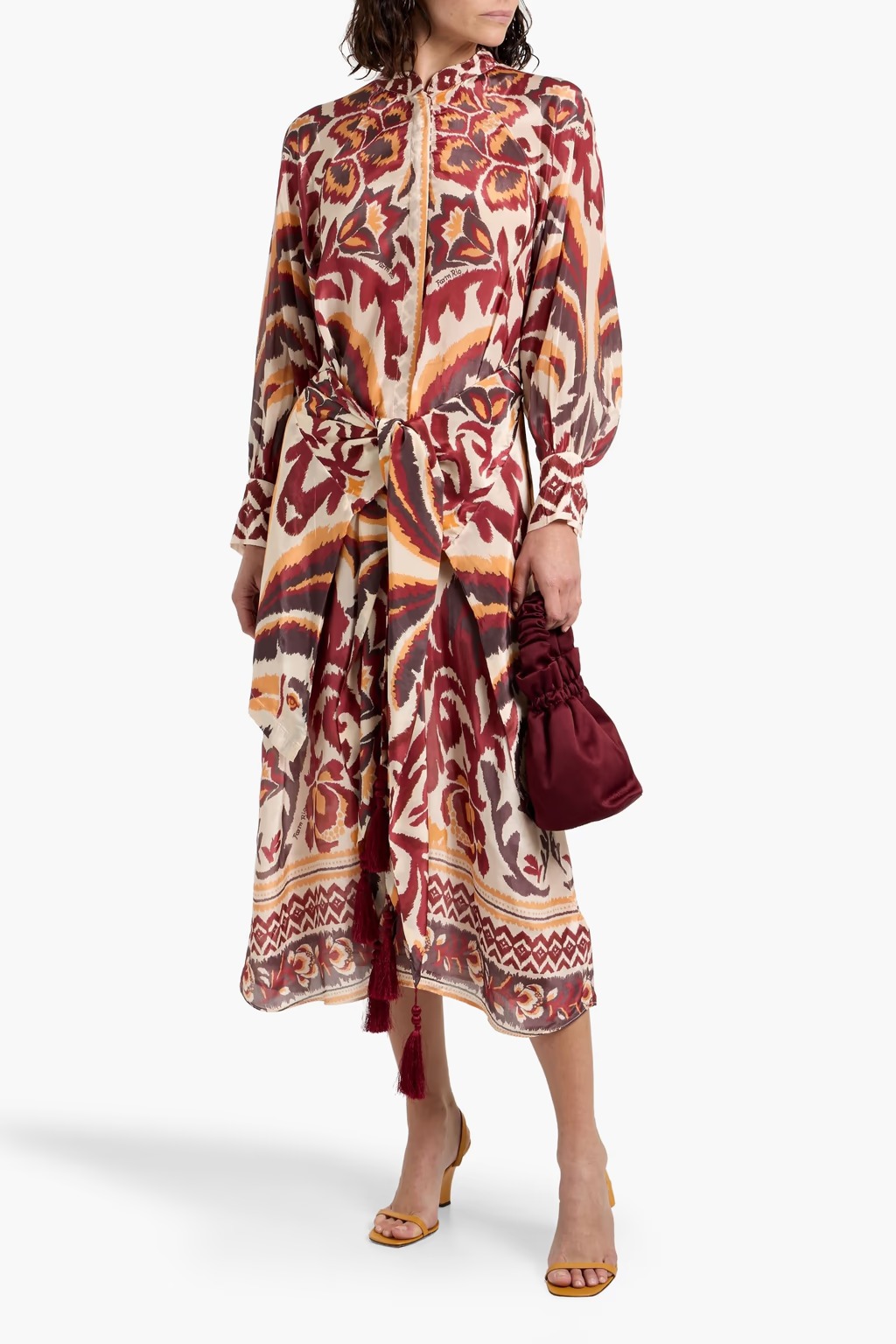 Ladies, put the “fun” in functional fashion with this Farm Rio Tie-front Printed Crepe De Chine Midi Dress! Seriously, who wouldn’t want to float into a room like a fashion goddess? With a sale price of just $135 down from $298, this dress is 55% off, and your wallet will thank you! The tie-front detail dances on the line between fancy and flirty, making it perfect for brunch or just strutting around your living room like you’re on a runway. Plus, the printed crepe de chine fabric feels as dreamy as it sounds. Trust me, this dress is a game-changer. Grab it before someone else beats you to it!Want more? Here are some similar deals Printed Crepe De Chine Maxi Dress for $144 and this Printed Satin Midi Shirt Dress for $135. If you like deals and sales on Farm Rio Women's Dresses, follow us on Instagram to get notified of the latest deals! For more deals on Women's Dresses click here.