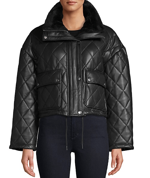 Great offer! Get this Faux Fur-Trim Quilted Faux Leather Jacket for only $60! That's 66% off regular price! Hurry - Only a few left! For more deals on Women's Outerwear click here.Faux Fur-Trim Quilted Faux Leather Jacket