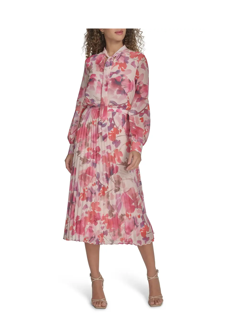 Hot deal! Get Floral Tie Neck Long Sleeve Pleated Chiffon Midi Dress for only $73! That's 54% off regular price! Will sell out fast!