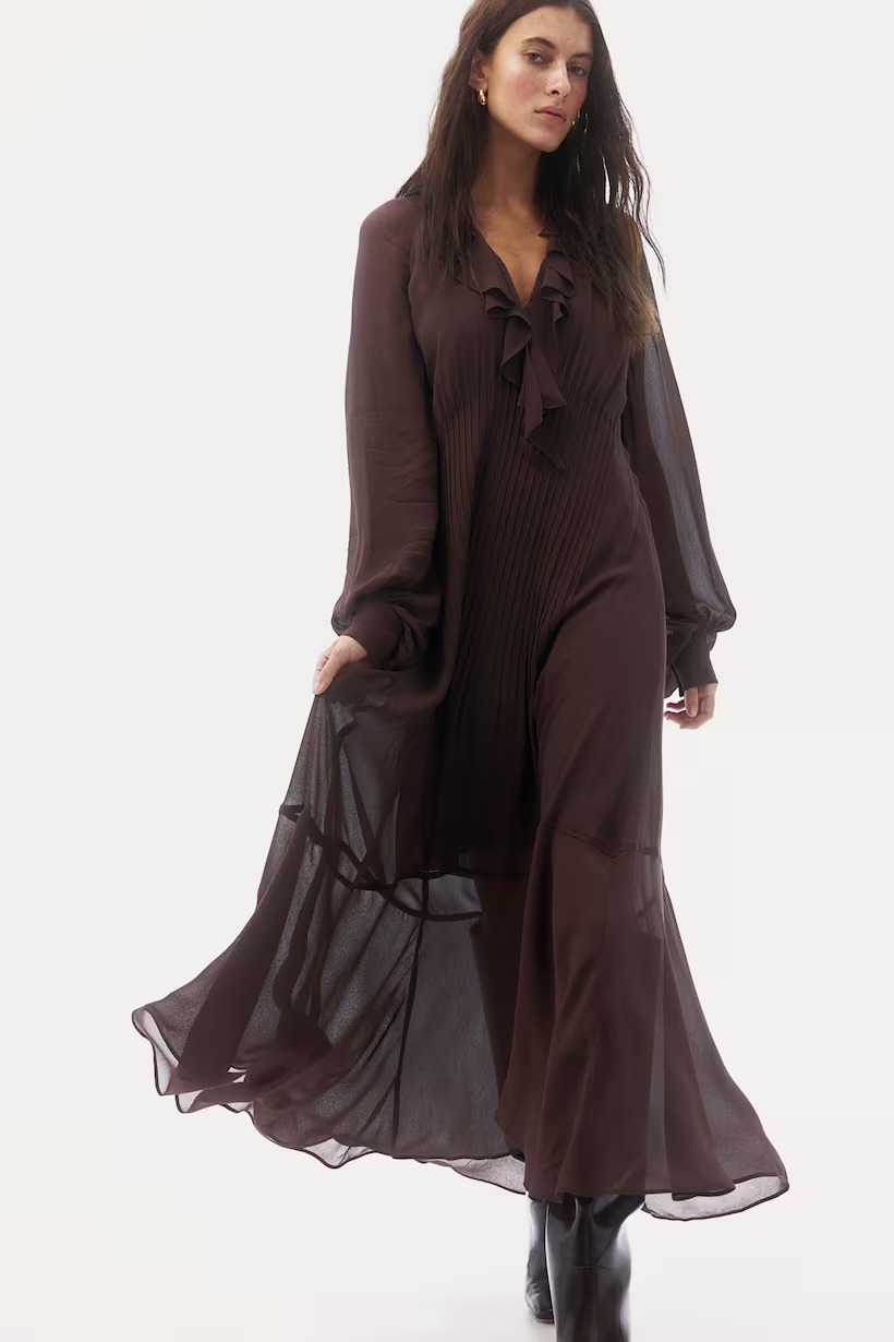 Check this out! Get Flounce-trimmed Chiffon Dress for only $90! Get it before it sells out!