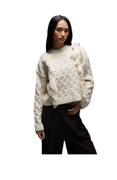 Oh, hey there cozy vibes! Let me introduce you to the Fluffy Tassel Cable Knit Sweater in Ecru, your new snuggle buddy. Picture this: you're wrapped up in this soft, stylish wonder, looking effortlessly chic while binge-watching your favorite shows. At just $45, it's a real steal for a piece that feels like a warm hug on a chilly day. Plus, those adorable tassels? They’re not just for show; they add a fun twist to your sweater game. This women's sweater will have your friends asking where you found such a gem. So, why not treat yourself? You deserve this fluffiness in your life!Here are some similar deals we think you'll enjoy Scuba Oversized Pullover for $49 and this Girls' 7-16 Crewneck Boxy Sweatshirt for $52. For more deals on Women's Sweaters click here.