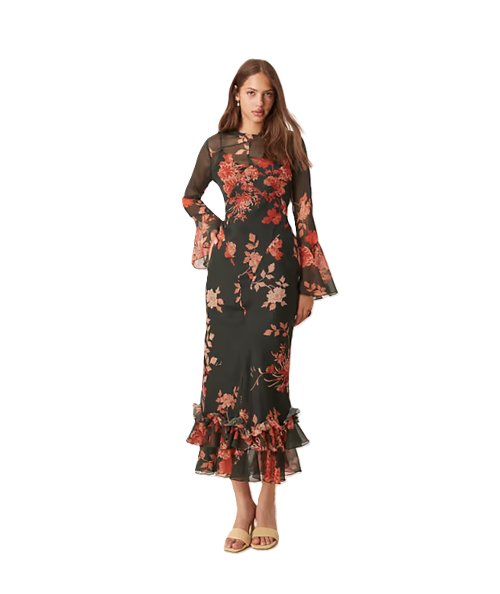 Hey fashionista! If you're on the hunt for that perfect dress that'll have you twirling into spring, look no further than this adorable Flutter Sleeve Maxi Dress with Frill Hem in Black and Red Floral. Seriously, it's like wearing a garden while feeling breeze-kissed. Priced at just $70, you won’t need to break the bank for fabulousness. And guess what? It ships for free! Whether you're headed to brunch or just lounging gracefully around your living room, this dress is your new go-to. With flutter sleeves and a playful frill hem, it’s practically begging for good times and compliments. Don't let this deal flutter away!Like this deal? Here are some like ones Zeliha Paisley Twist Front Midi Dress for $209 and this Satin Botanical Maxi Dress for $30. For more deals on Women's Dresses click here.