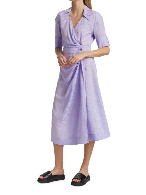Hot!! Get this Floral Jacquard Wrap Dress for only $222! That's 50% off regular price! Plus, this Floral Jacquard Wrap Dress ships free! Get it while it's hot! Not what your'e looking for? Check these out — Floral Silk Shift Dress for $389 and this Ganni Seersucker Check V-neck Midi-dress for $162. If you like deals and sales on Ganni Women's Dresses, follow us on Instagram to get notified of the latest deals! For more deals on Women's Dresses click here.