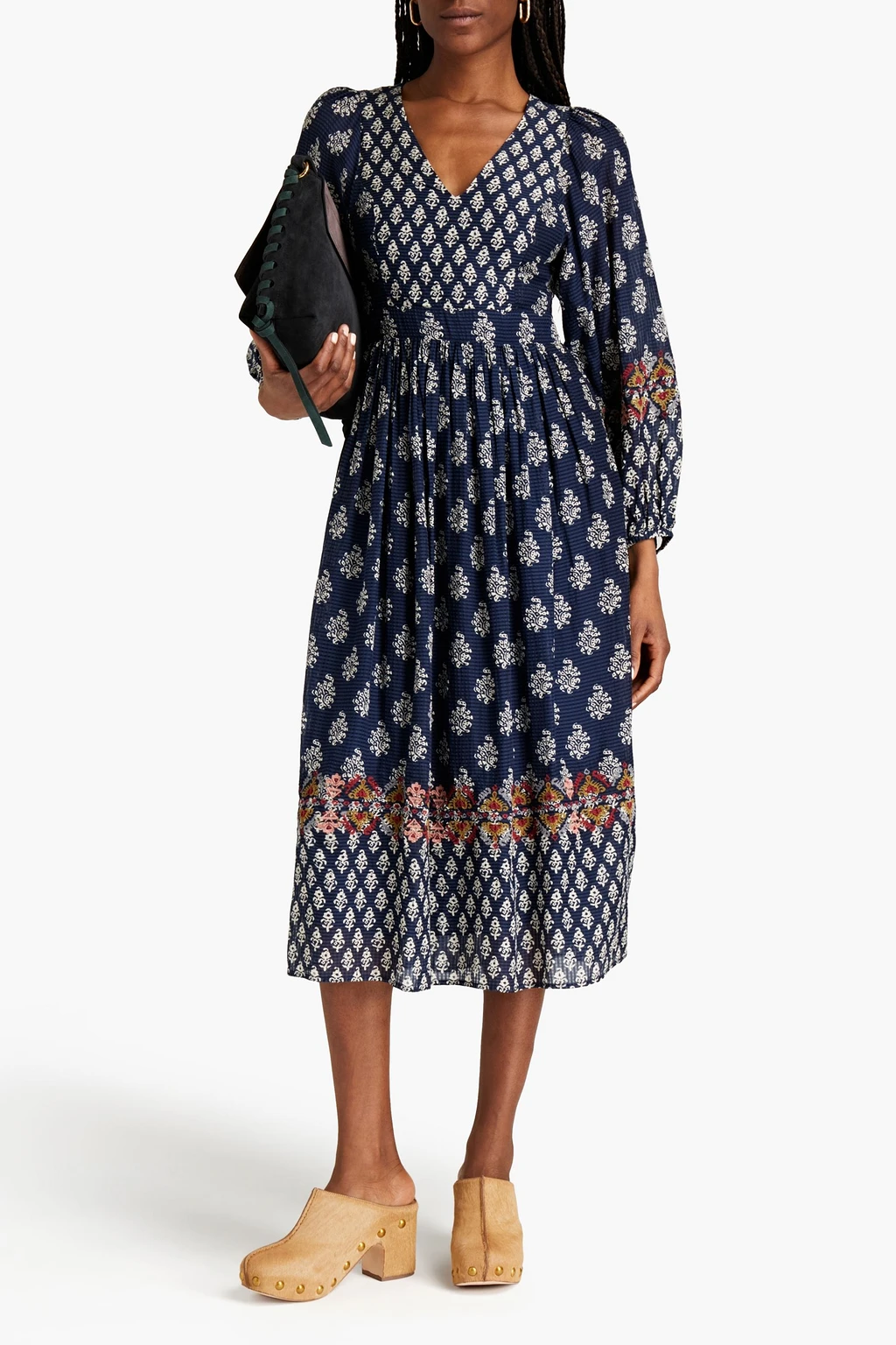 Hot!! Get Gathered printed seersucker midi dress for only $254! That's 55% off regular price! Hurry - Only a few left!