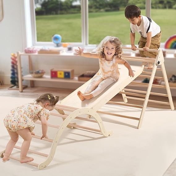 Hot!! Get Giant Bean Large Foldable Pikler Triangle Set with Sliding Ramp & Climbing Arch Ramp for only $115! That's 23% off regular price! Will sell out fast!