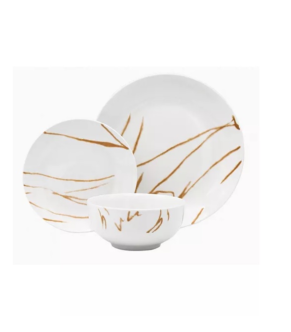 12 Pc White and Gold Dinnerware Set, Service for 4