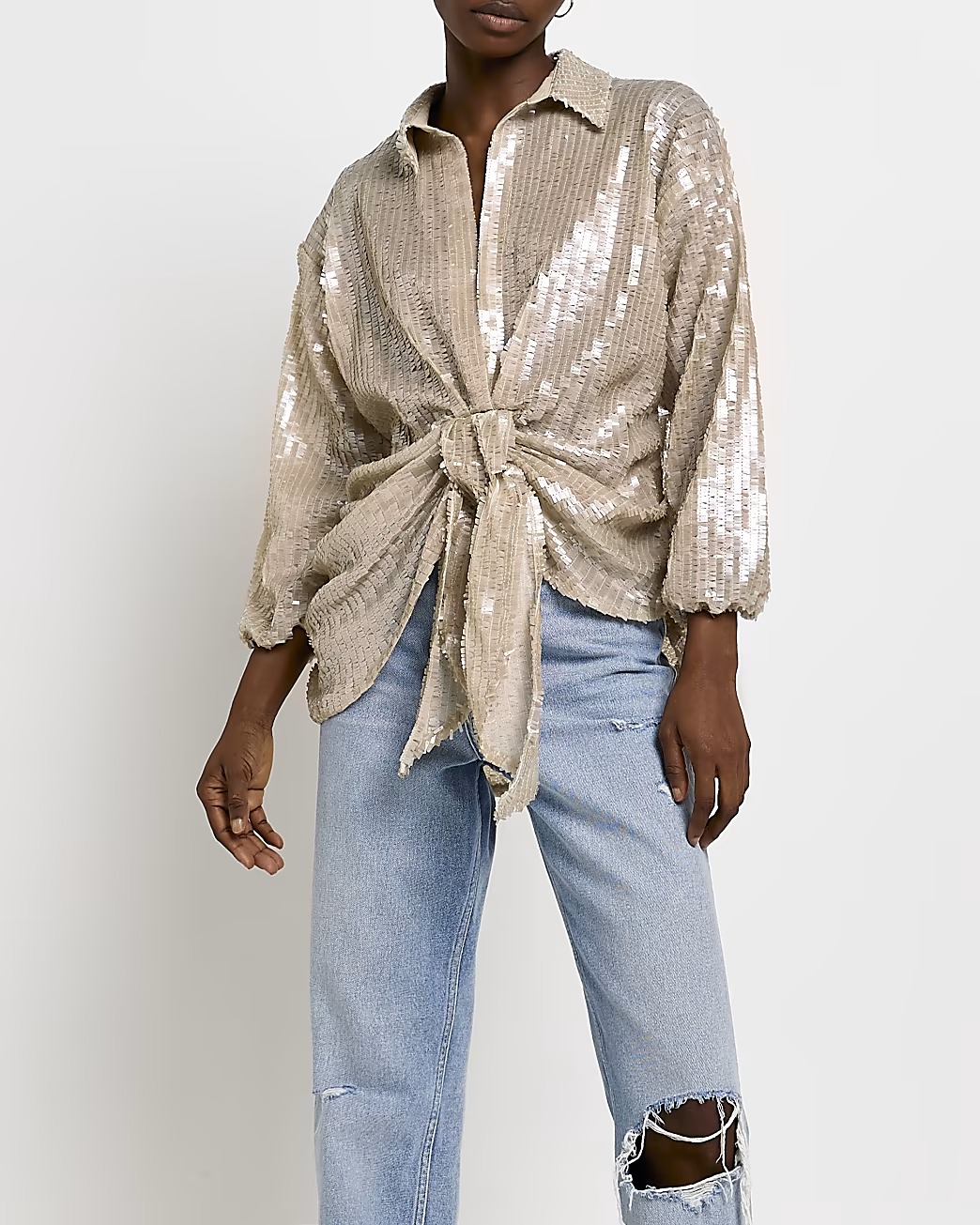 Check this out! Get GOLD SEQUIN TIE FRONT BLOUSE for only $102! Plus, GOLD SEQUIN TIE FRONT BLOUSE ships free! Run! Get it before it's too late!