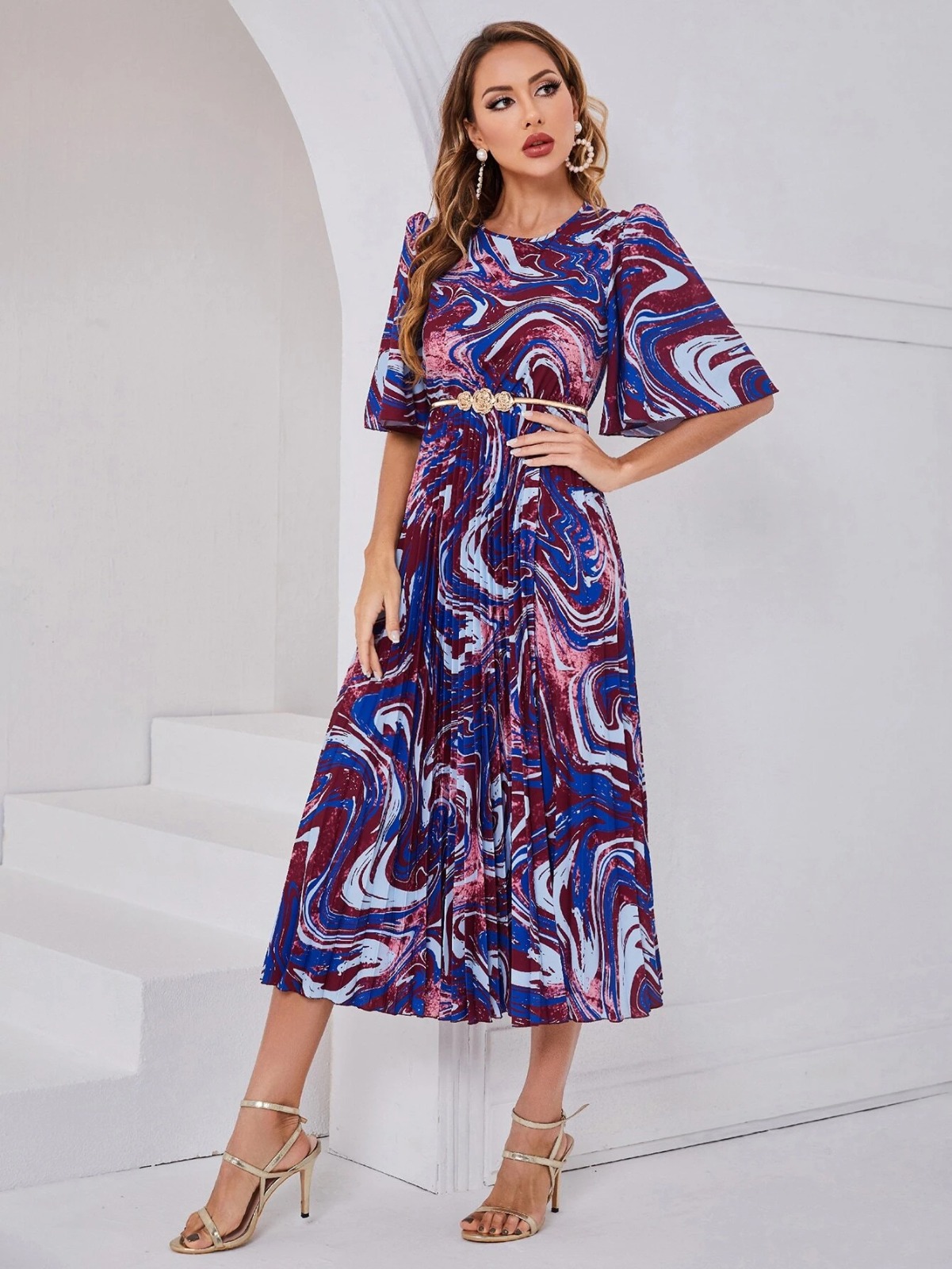 Here's the deal - Get Graphic Print Pleated Split Thigh Dress Without Belt for only $25! Plus, Graphic Print Pleated Split Thigh Dress Without Belt ships free! Hurry - Only a few left!