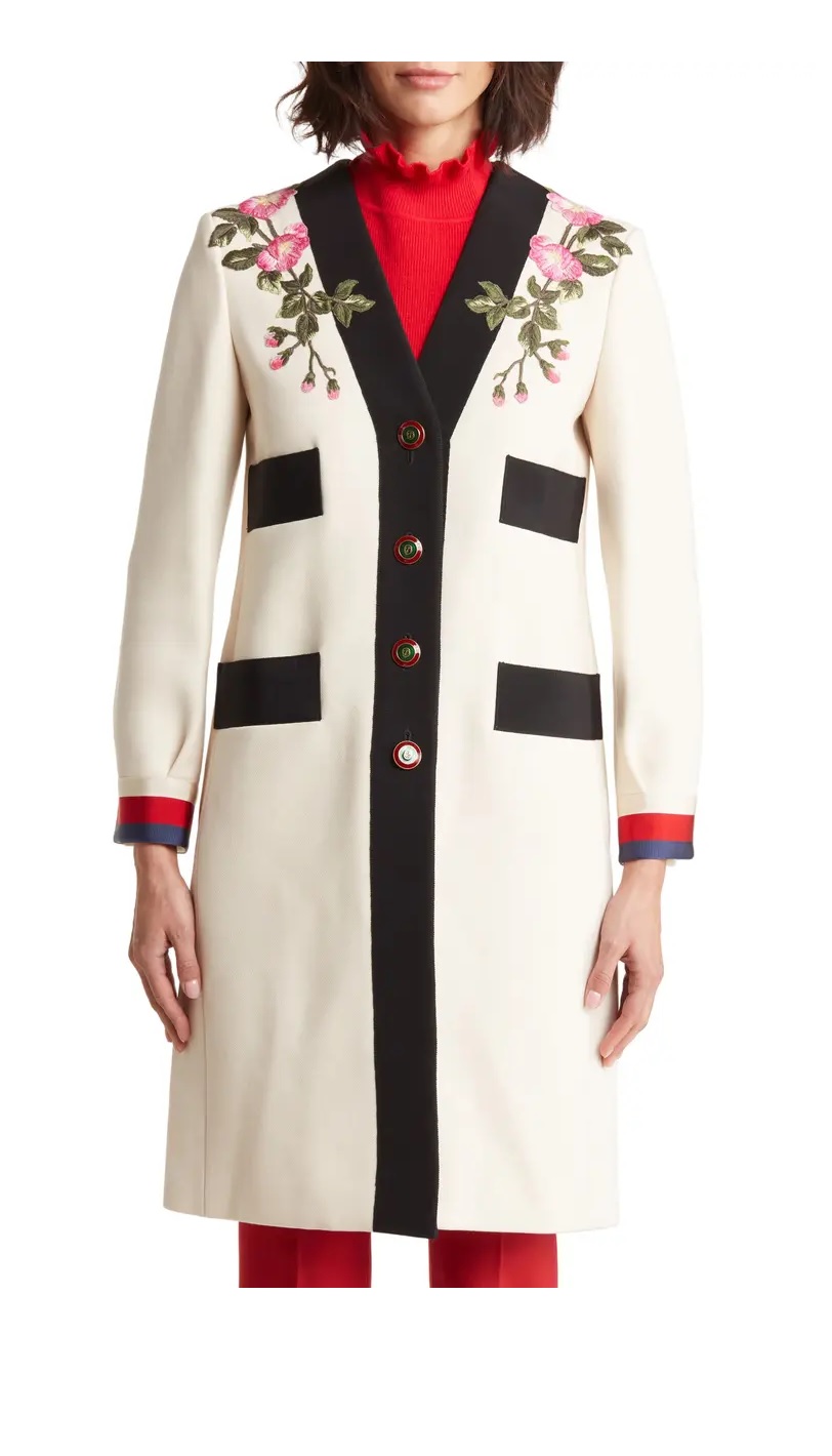 Super deal! Get this Floral Embroidered Wool Coat for only $2050! That's 52% off regular price! Plus, this Floral Embroidered Wool Coat ships free! Hurry - Only a few left! Here are some similar deals we think you'll enjoy — Maeve Tinsel Eyelash Sweater for $90 and this The Beatriz Mock-neck Sweater for $97. If you like deals and sales on Gucci Women's Sweaters, follow us on Instagram to get notified of the latest deals! For more deals on Women's Sweaters click here.