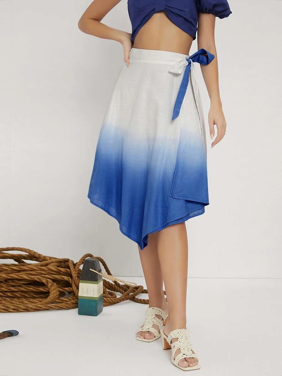 We know you'll love this! Get High Waist Ombre Hanky Hem Knot Side Skirt for only $18! Plus, High Waist Ombre Hanky Hem Knot Side Skirt ships free! Will sell out fast!