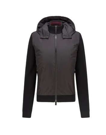 A versatile jacket with a detachable hood by BOSS Menswear. Featuring a logo detail at the waterproof zip, this regular-fit jacket is crafted in a combination of recycled material and ribbed wool for hybrid styling. Padding made with 80% recycled fibers offers lightweight