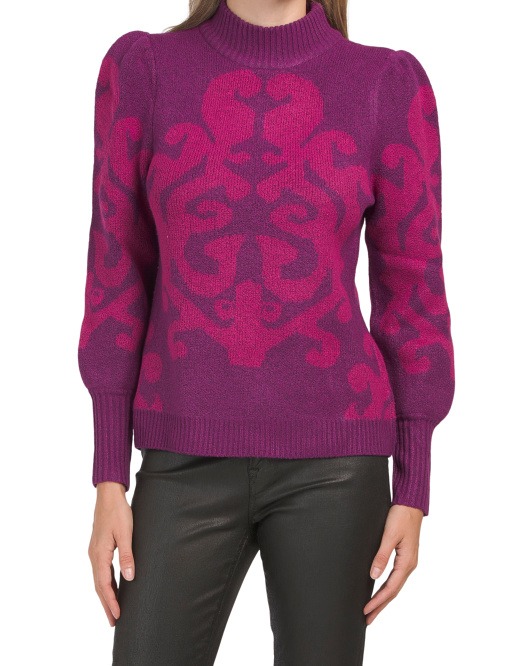 Here's the deal - Get Intarsia Mock Neck Balloon Sleeve Sweater for only $30! That's 47% off regular price! Hurry - Only a few left!