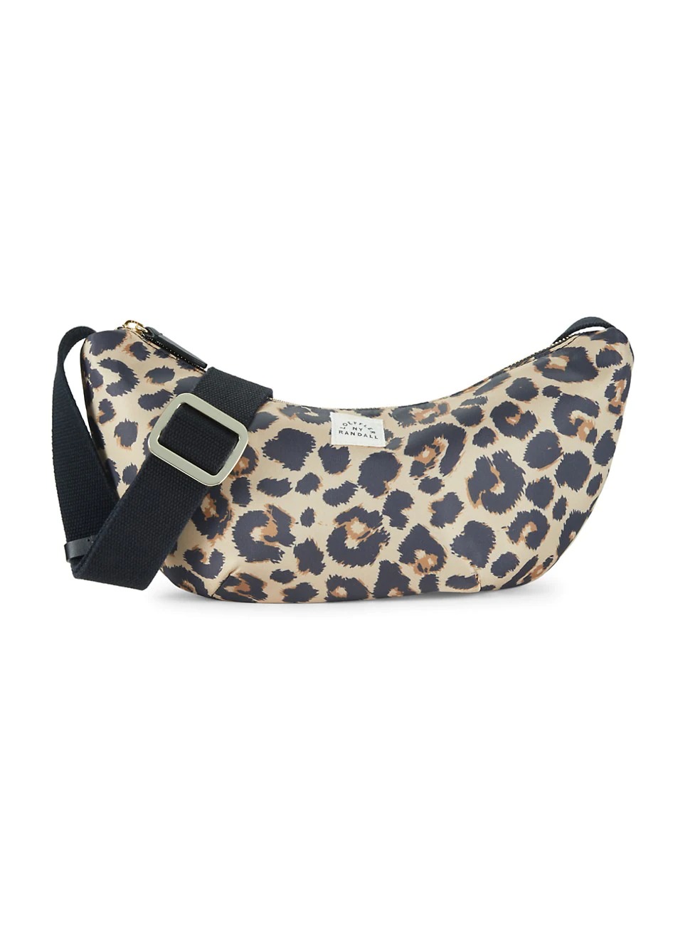 Crescent-shaped sling bag with an audacious leopard print.