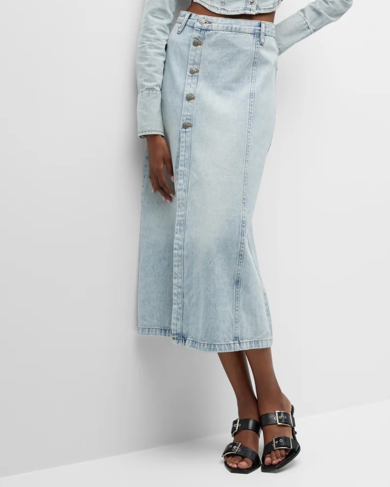 We know you'll love this! Get Jordan Asymmetric Button-Front Denim Midi Skirt for only $88! That's 63% off regular price! Plus, Jordan Asymmetric Button-Front Denim Midi Skirt ships free! Get it before it sells out!