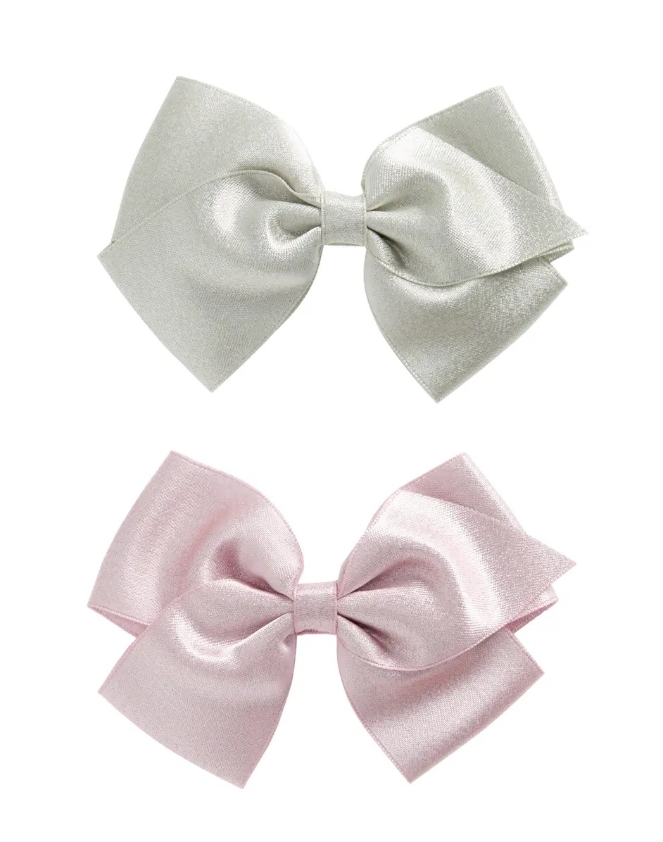 A metallic sheen gives a lovely luster to these two bow that you'll love embellishing her tresses with.