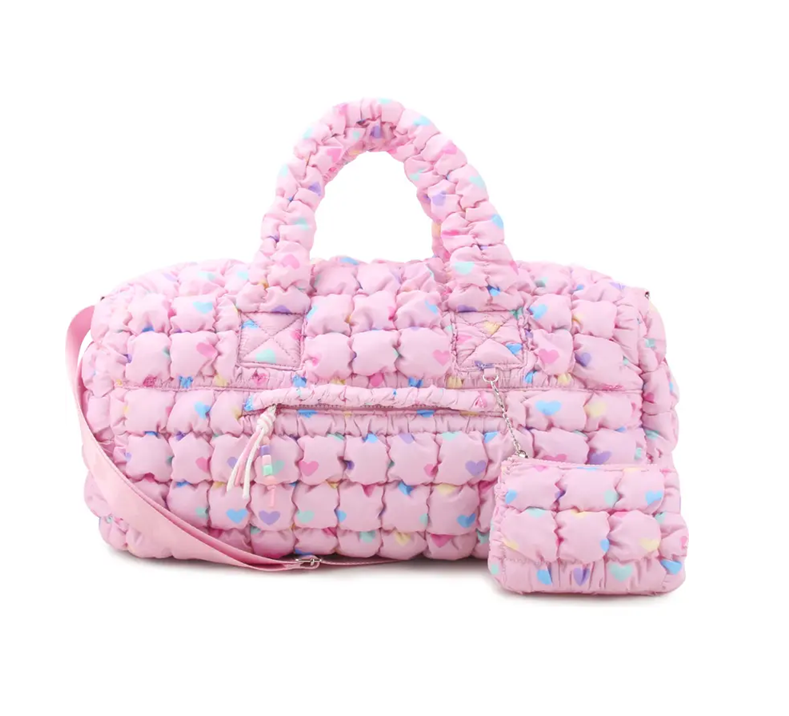 Hey there, savvy shoppers! Check out this adorable Kids' Heart Scrunch Large Duffel Bag & Keychain Set. Normally priced at $58, it’s a total steal at just $27. That’s a whopping 53% off! Perfect for sleepovers, gym class, or just hauling around all those treasures kids find (seriously, where do they get this stuff?). The scrunch design is both cute and practical, making it a win-win for parents and little ones alike. Plus, the heart motif adds a sprinkle of fun to any adventure. Don’t wait – this deal will disappear faster than your kid's favorite snack!Like this deal? Here are some like ones Kids' Goal Getter Duffle Bag for $25 and this Ran Futura Backpack for $20. For more deals on Kid's Accessories click here.