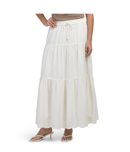 Hot deal! Get Linen Blend Fully Lined Tiered Embroidered Maxi Skirt for only $40! Will sell out fast!