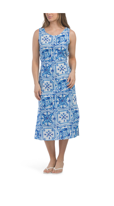 Hot!! Get Linen Blend Sleeveless Capri Mosaic Print Dress for only $30! That's 40% off regular price! Hurry - Only a few left!