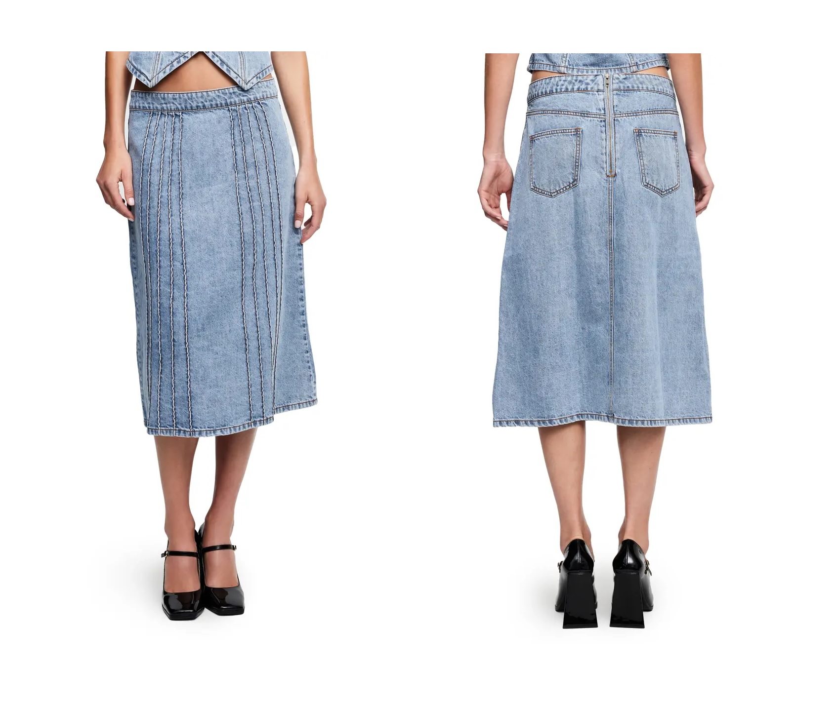 We know you'll like this- Get this Camelia Denim Midi Skirt for only $90! Plus, this Camelia Denim Midi Skirt ships free! Get it while it's hot! Want more? Here are some similar deals — LVIR Asymmetric Pleated Faux Leather Midi Wrap Skirt for $213 and this Free People Dreamweaver Maxi Skirt for $168. If you like deals and sales on LIONESS Women's Skirts, follow us on Instagram to get notified of the latest deals! For more deals on Women's Skirts click here.