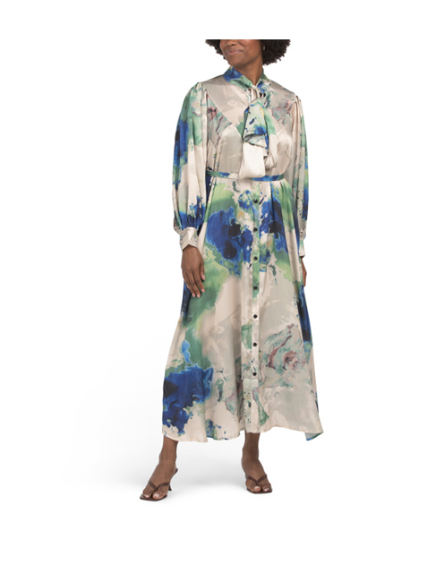 Have you ever wanted to wear the sky on a sunny day? Well, this Long Sleeve Marble Printed Tie Neck Maxi Dress is about as close as you can get! With its stunning marble print, you’ll look effortlessly chic whether you’re at a brunch or just pretending to be in a magazine shoot. And guess what? It's now just $60, slashing that original price of $120 right in half! Talk about a solid deal. The long sleeves keep you comfy while the tie neck adds a flirty touch. Don't sleep on this stylish find; grab it before it floats away into someone else's wardrobe!Want more? Here are some similar deals Long Sleeve Floral Print Shirt Dress with Tie Belt for $70 and this Lace Gown for $1335. For more deals on Women's Dresses click here.