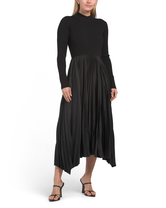 Check this out! Get Long Sleeve Mock Neck Mixed Media Midi Dress for only $130! Shop now before it sells out!